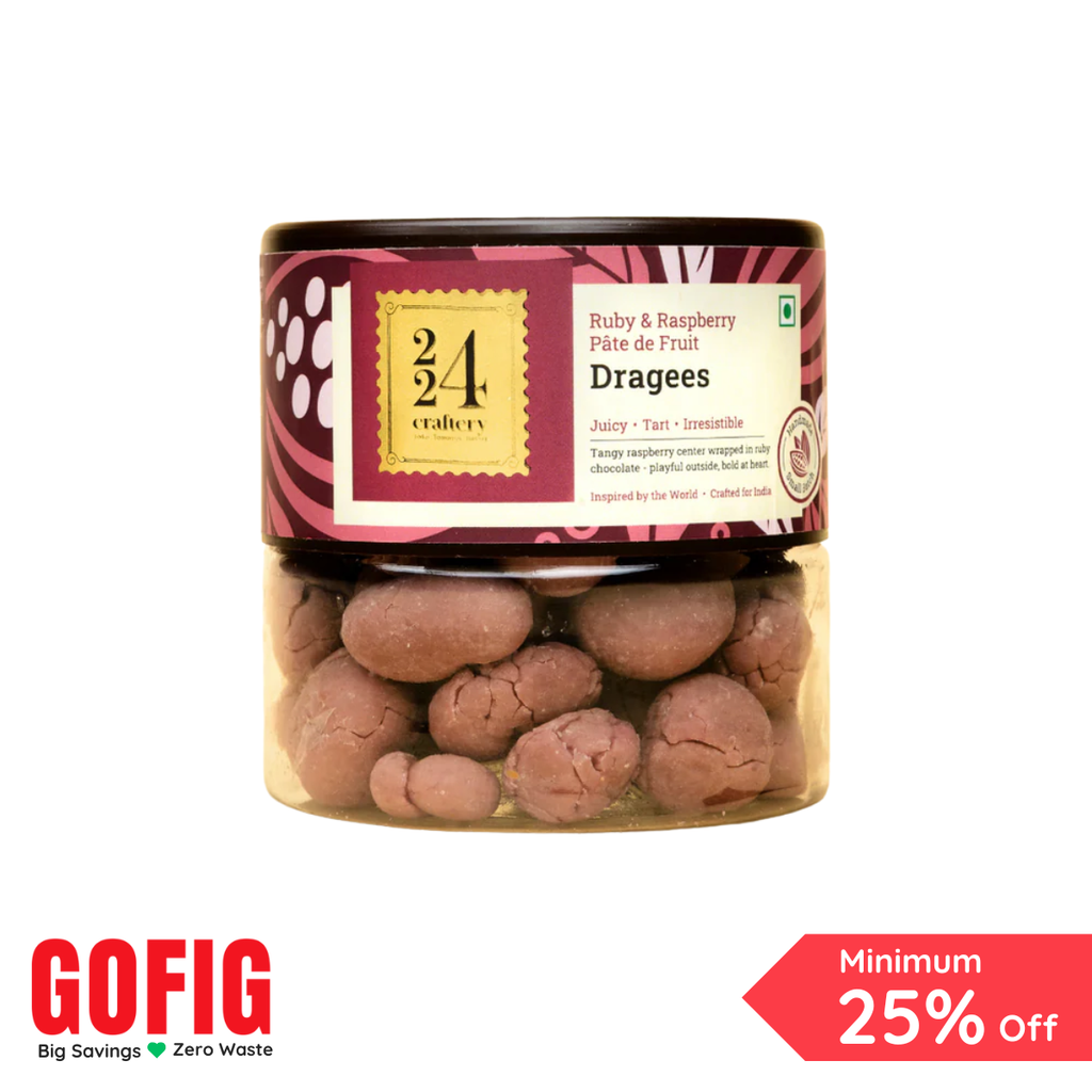 Indulge in the vibrant allure of 224 Craftery's Ruby & Raspberry Pâte de Fruit Dragees. These jewel-like confections showcase the bright, tart essence of fresh raspberries encased in a luxurious ruby chocolate shell, creating a striking visual and sensory experience. Each dragee delivers a burst of fruity intensity balanced by the smooth richness of premium chocolate, with a texture that transitions from crisp exterior to silky centre. Meticulously crafted in small batches using authentic fruit preparations and finest ingredients, this 120g collection celebrates the art of confectionery. A sophisticated treat for those who appreciate the marriage of natural fruit flavour and artisanal chocolate mastery.