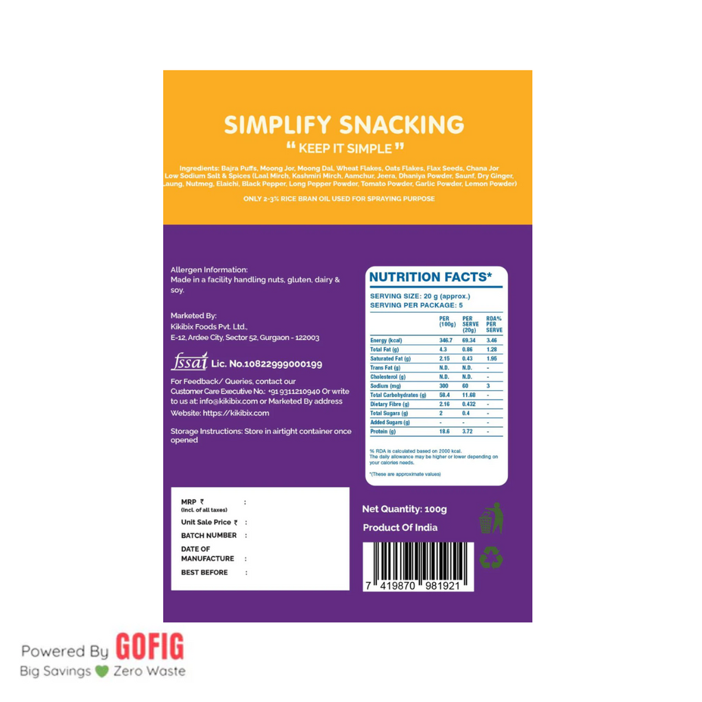 Kikibix is a clean-label snack brand committed to making healthy eating fun, delicious, and convenient. We craft 100% baked, wholesome snacks made with real ingredients - no maida, no refined sugar, no preservatives, and no palm oil. From nutrient-packed cookies to guilt-free savoury bites, every Kikibix product is thoughtfully made to balance taste and nutrition. Our goal is simple - to help you snack smarter without compromising on flavor.