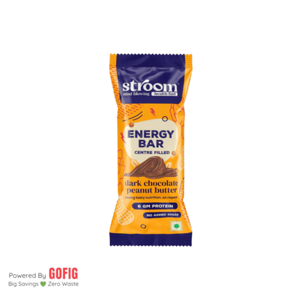 Delicious Dark Chocolate Peanut Butter: Indulge in a pack of 8 Dark Chocolate Peanut Butter Protein Bars from STROOM, providing a natural, centre-filled energy boost with a classic Dark Chocolate Peanut Butter flavor.